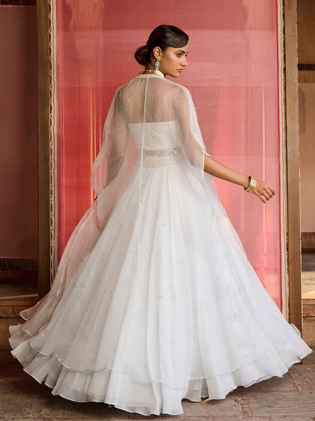 - Matching organza jacket with hand embroidered motifs all over and a detailed border in the front