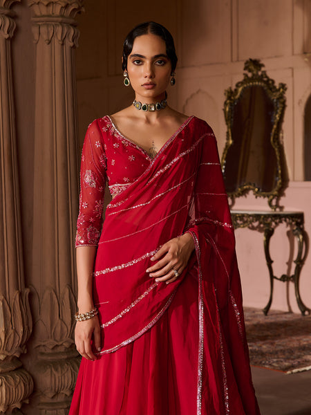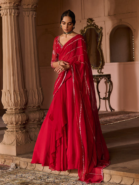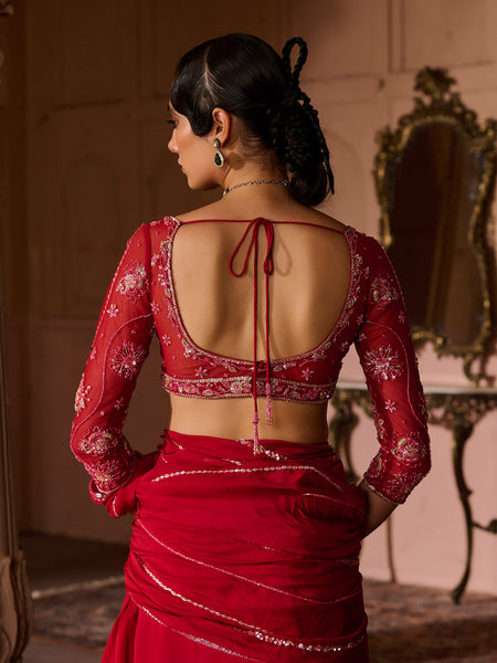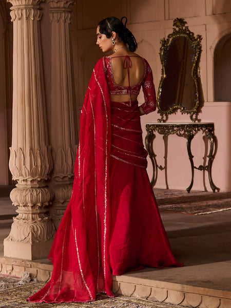 - Full length Draped Saree in organza base with an attached drape